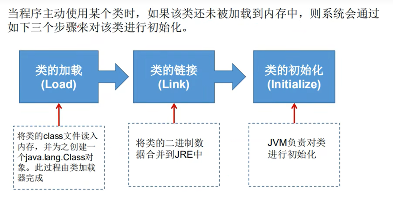 加载:将class文件字节码内容加载到内存中。将这些静态数据结构转换成方法区的运行时数据结构,然后生成一个代表这个类的java.lang.Class对象