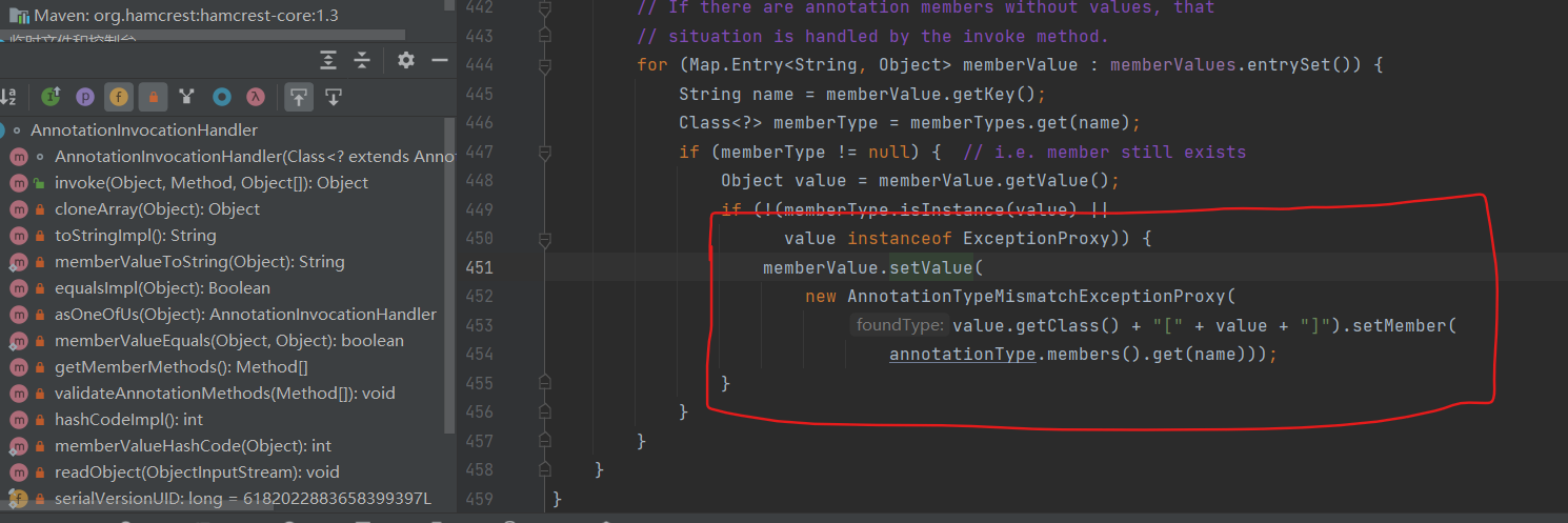 注意这个类不是public类型,不能直接获取,因此需要反射获取Class.forName("sun.reflect.annotation.AnnotationInvocationHandler");