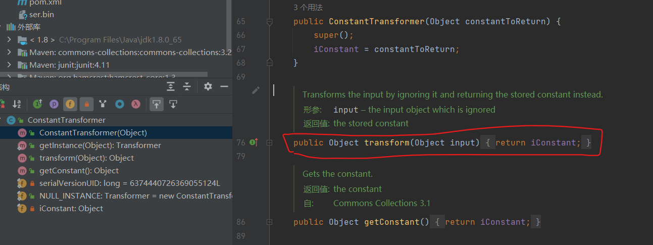 这样的话,就不得不提到这个 ConstantTransformer类了