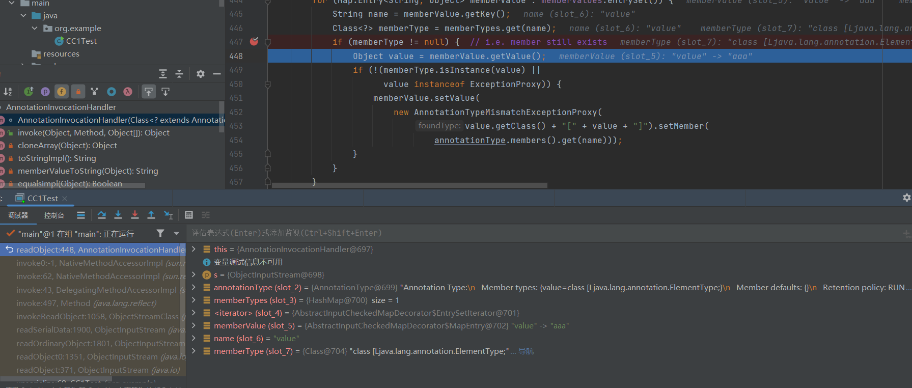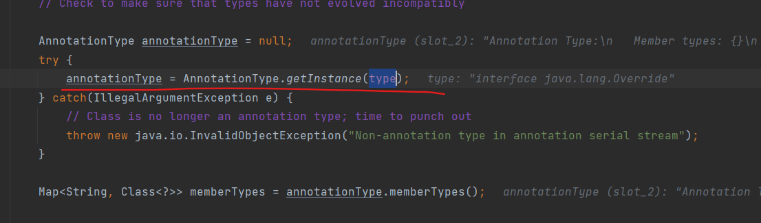 annotationInvocationHandler类readObject里 setValue() 里参数控制 –解决 我们调试进去看一下