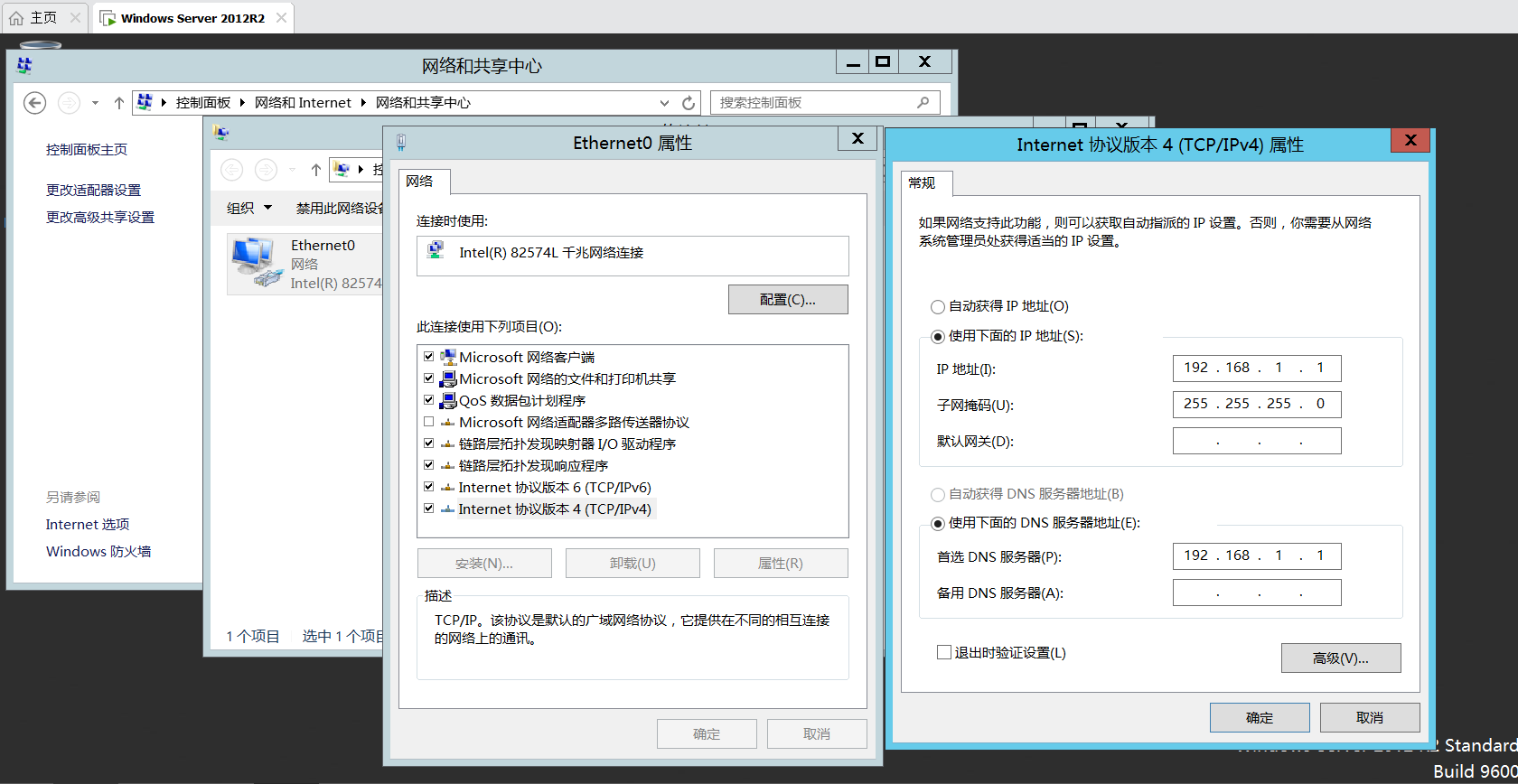 - 设置ip为192.168.1.1,子网掩码为255.255.255.0,DNS指向自己IP