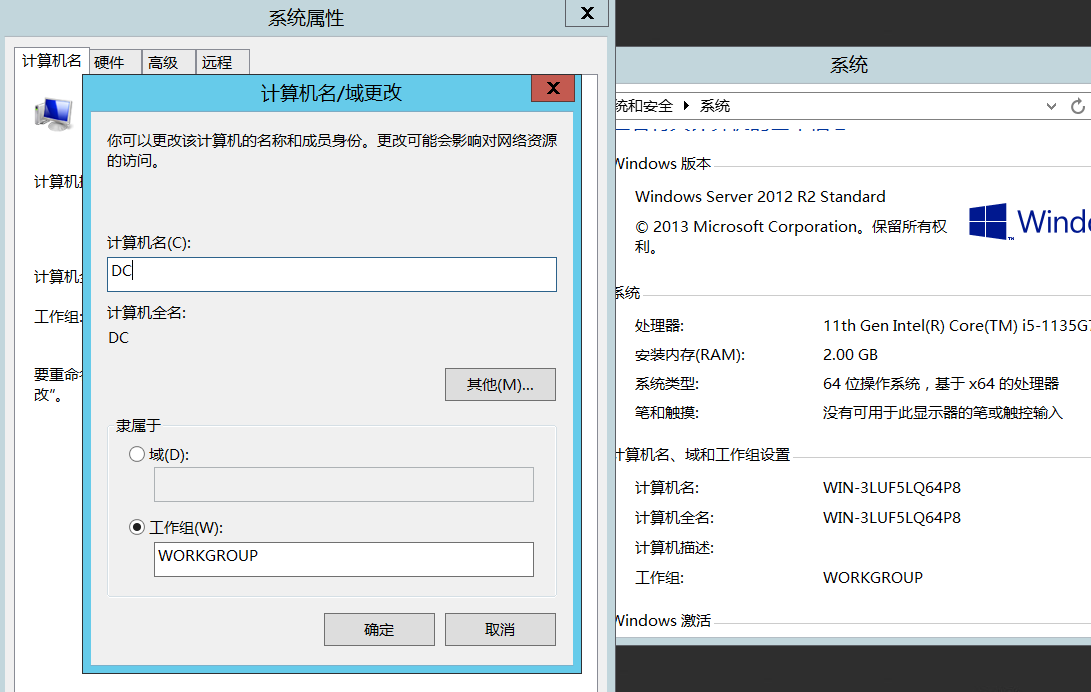 更改IP地址与DNS服务器地址–>更改计算机名–>加入域