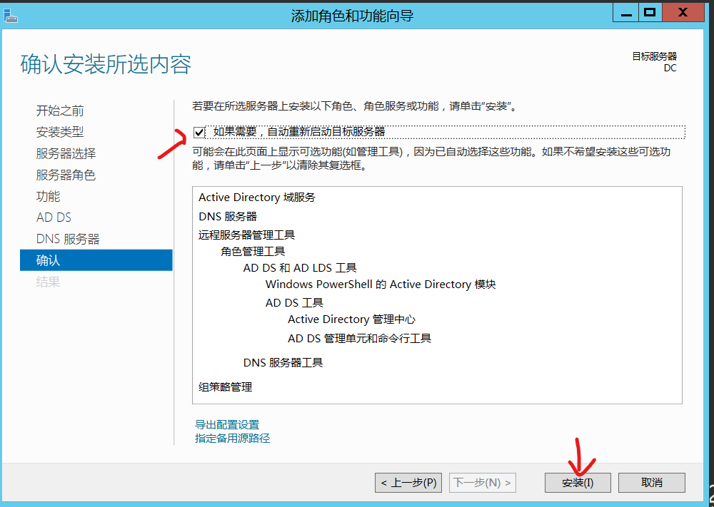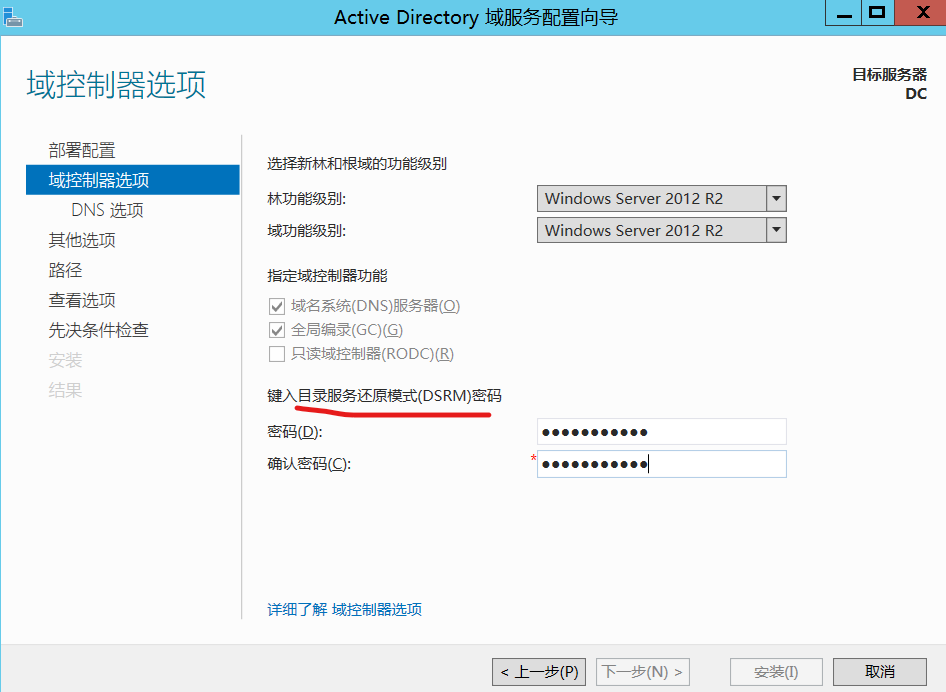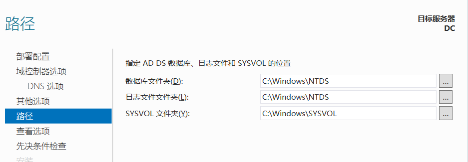 路径–指定数据库、日志、SYSVOL文件夹位置: 这里保持默认
