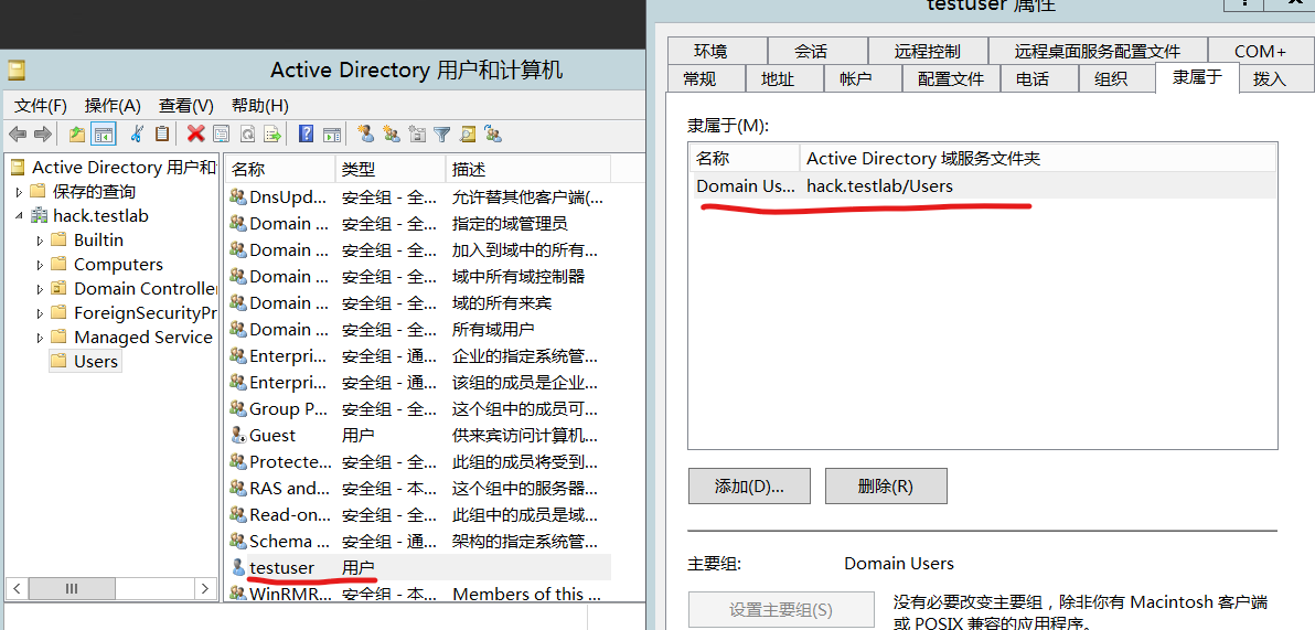 这里需要输入以下域的账号和密码。这里我们输入新建的testuser,确定